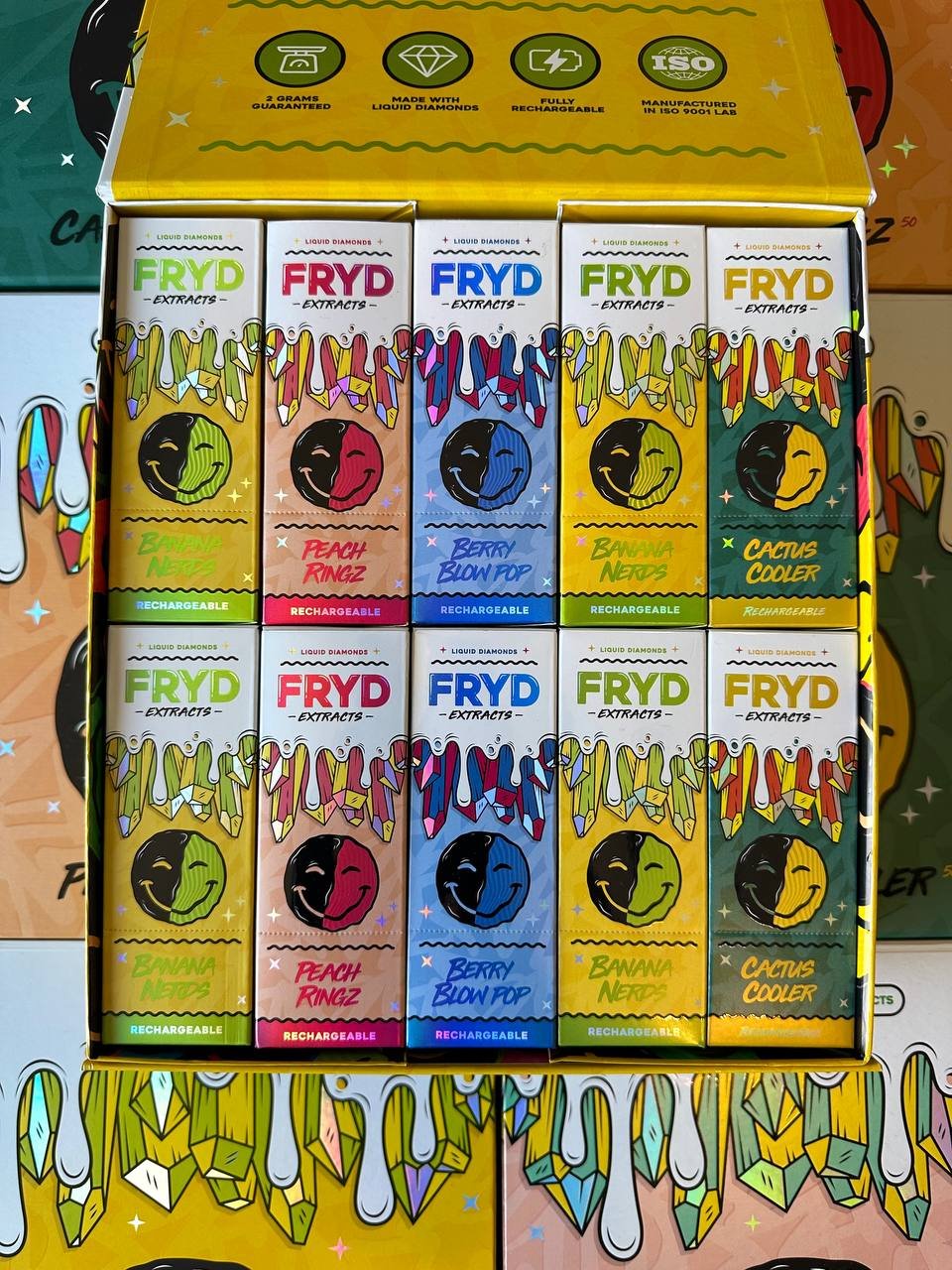 Elevate your vaping experience with the FRYD DISPOSABLES LIQUID DIAMONDS MASTER BOX 100PCS. Known for its exceptional quality and rich terpene profile, this Fryd Extract product offers a smooth and potent hit every time. Whether you are a fan of live resin or liquid diamonds, FRYD DISPOSABLES LIQUID DIAMONDS MASTER BOX 100PCS delivers the authentic flavor and strength you crave.